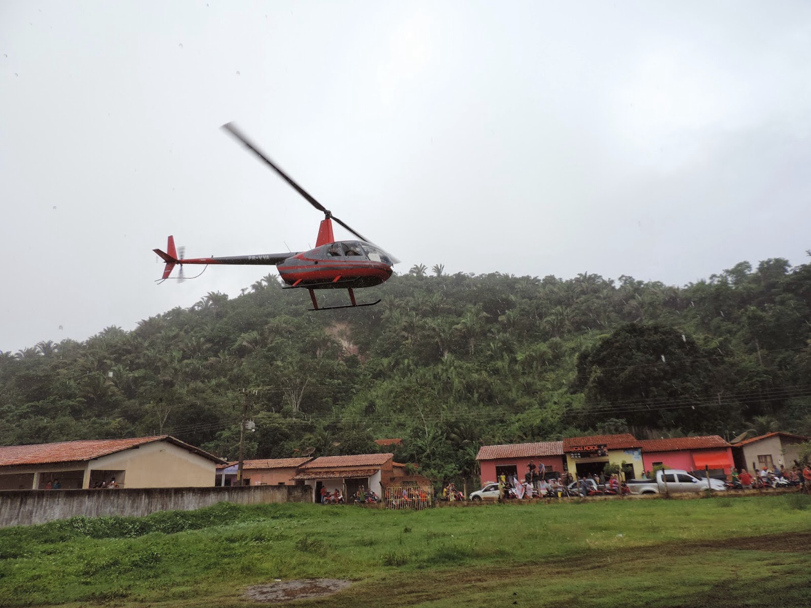 Prefeito de Marajá do Sena chega de Helicóptero enquanto entrada da cidade está uma calamidade
