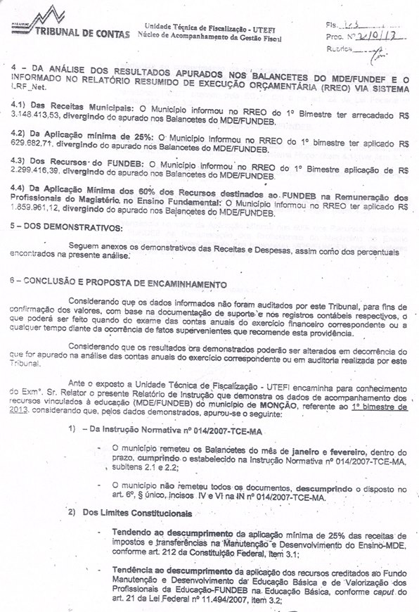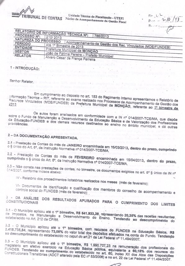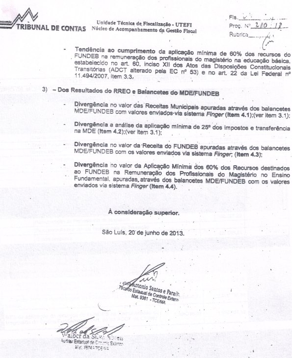As graves acusações que pesam contra Queiróz, junta-se ao relatório emitido pelo Tribunal de Contas do Estado do Maranhão, referente aos balancetes do FUNDEB dos meses de janeiro e fevereiro.