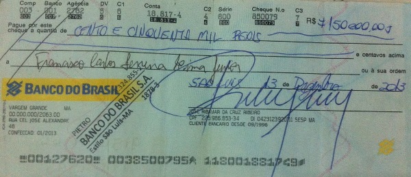 A fama de mal pagador deve ser denunciada como estelionato na Polícia Civil do Maranhão. Confira abaixo o cheque: