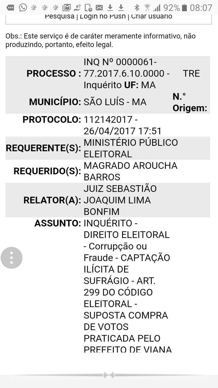 Em Viana, Magrado responde a uma AIME – Ação de Impugnação de Mandato Eletivo, prevista na Constituição Federal, processo 77.2017.6.10000, cujo objetivo é impugnar o mandato obtido com abuso de poder econômico, corrupção ou fraude.