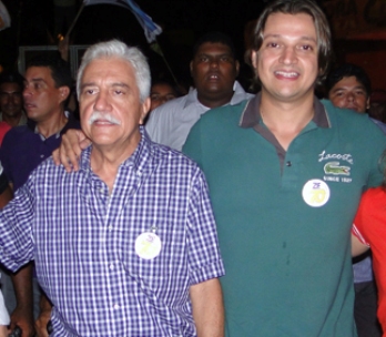 O prefeito José Leandro e o filho dono da loja Jacaré Home Center.