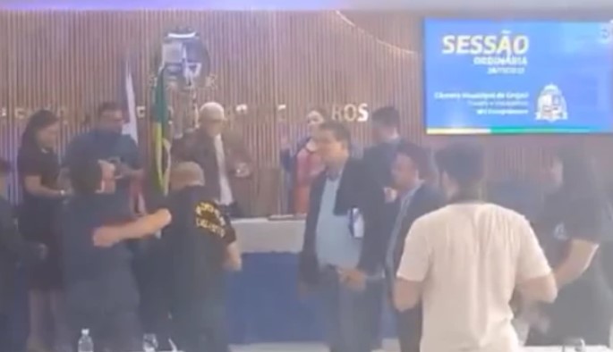 O prefeito de Grajaú, Mercial Arruda, e o vereador Adenildo Rodrigues protagonizaram cenas lamentáveis durante a sessão solene na Câmara Municipal, na terça-feira (28).
