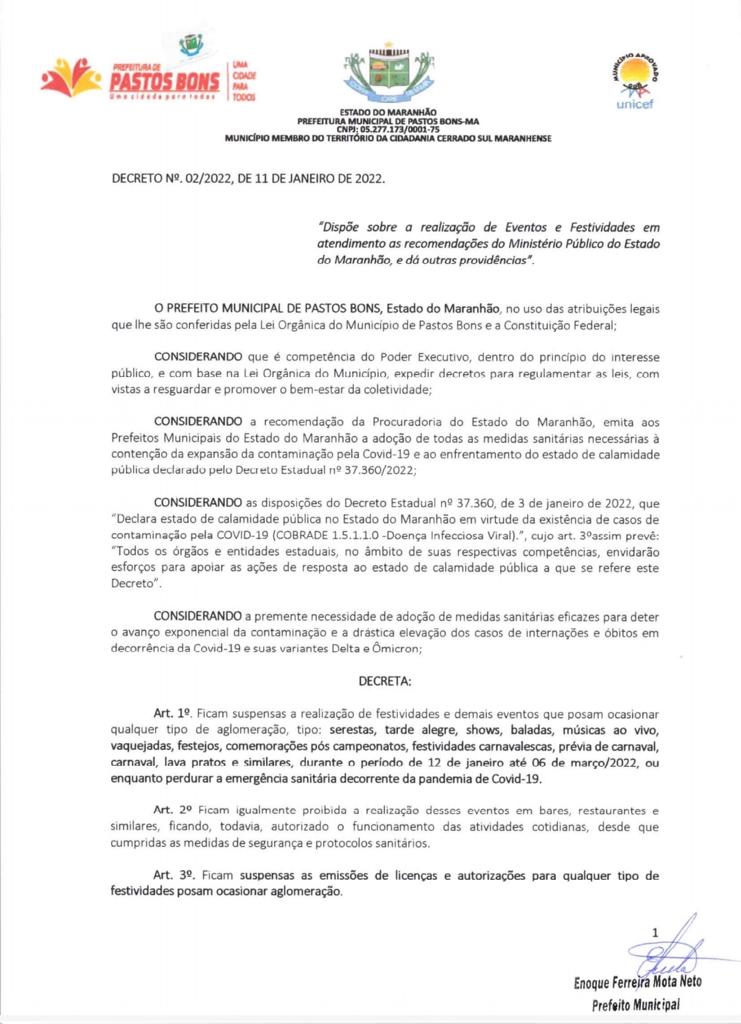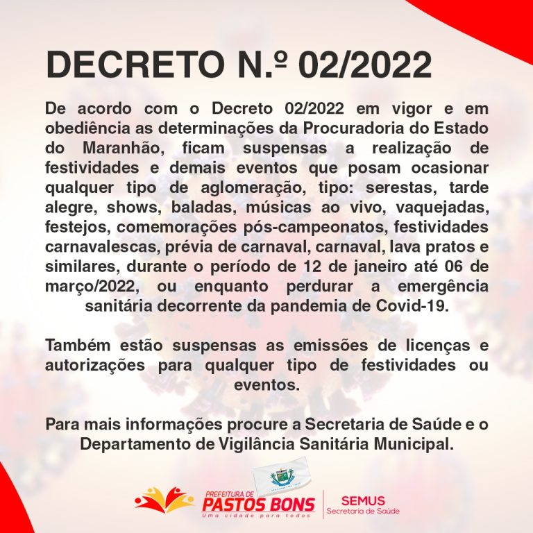 O Decreto visa atender as recomendações feitas pelo Ministério Público do Estado do Maranhão e terá validade até depois do Carnaval.