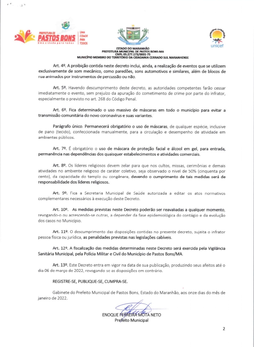 Para tentar conter o avanço da Covid-19, o prefeito de Pastos Bons, Enoque Mota, emitiu um novo decreto com medidas sanitárias restritivas.