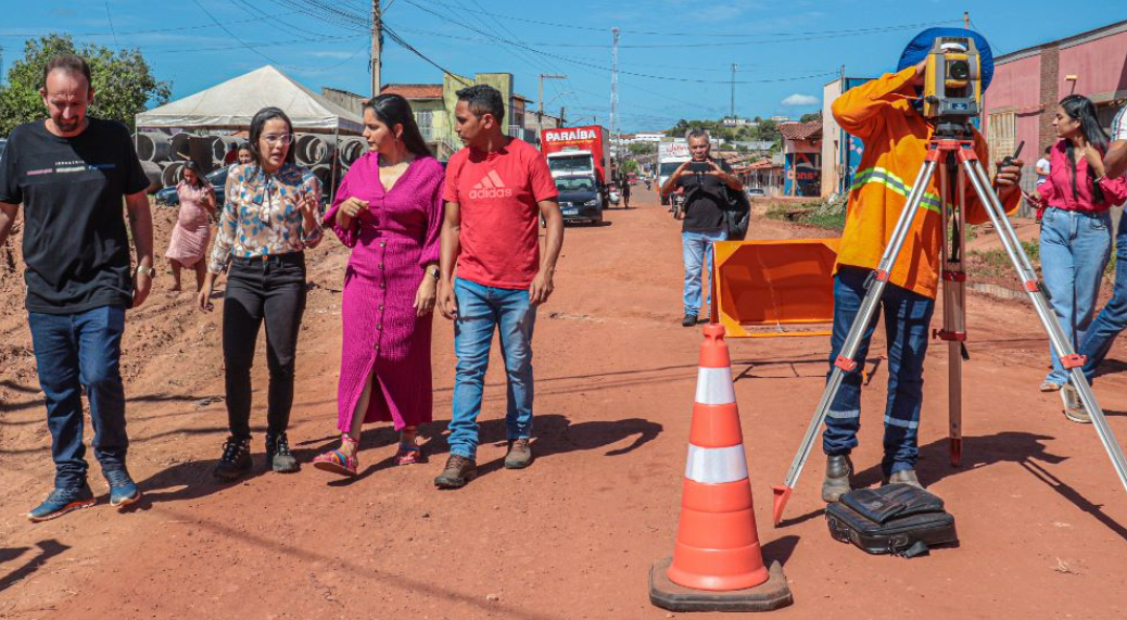 De início a equipe está realizando no local a topografia da Avenida e suas transversais, onde será consequentemente feito o preparo da rede de esgoto com manilhamento, bases e pavimentação asfáltica.