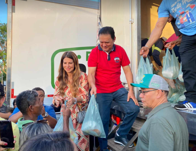 O prefeito Rigo Alberto Teles da Sousa, a primeira-dama e deputada estadual Abigail, juntamente com a secretária de Assistência Social, Antônia Costa, acompanharam toda distribuição.