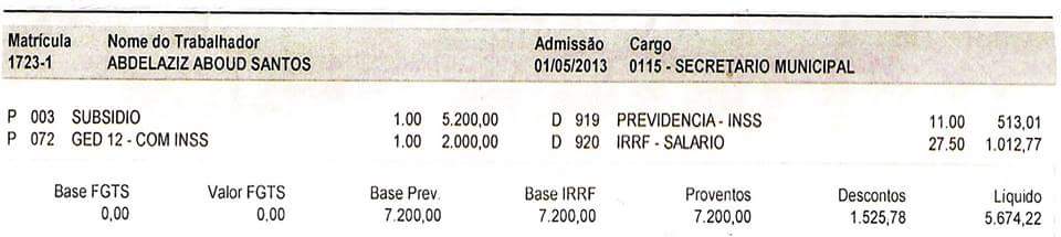 O “cabide de empregos” tem nomes como o de Aziz Aboud, Aroldo Mandacaru, o ex-deputado Domingos Dutra, que tem salário no município de procurador e, Zé Maria do Sobradinho, que também não trabalha, além de outros funcionários fantasmas.