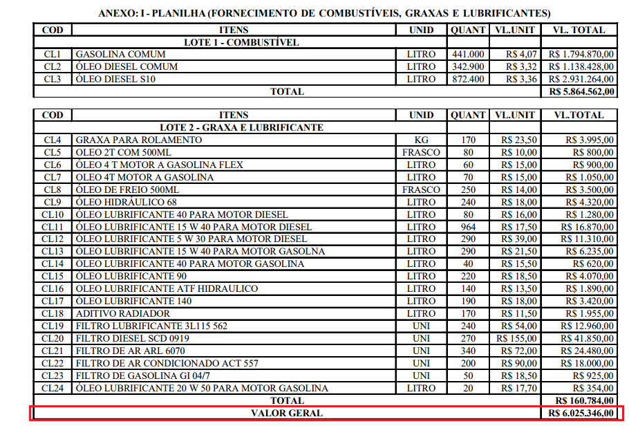 O contrato firmado entre ambas as partes visa o fornecimento de combustíveis, graxas e lubrificantes para atender as Secretarias Municipais.