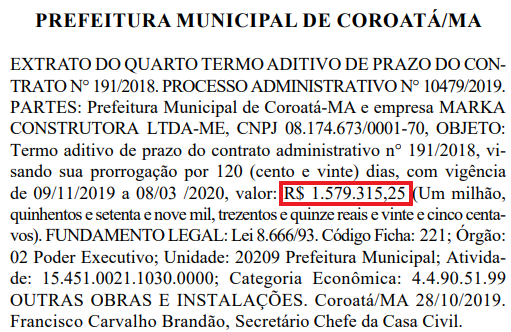 Prefeitura de Coroatá firma o quarto aditivo milionário com empresa de São Mateus