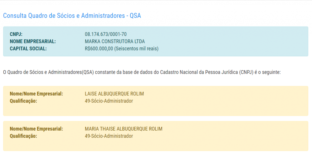 O Blog do Neto Ferreira apurou que a Marka tem como sócias Laise Albuquerque Rolim e Maria Thaisa Albuquerque Rolim.