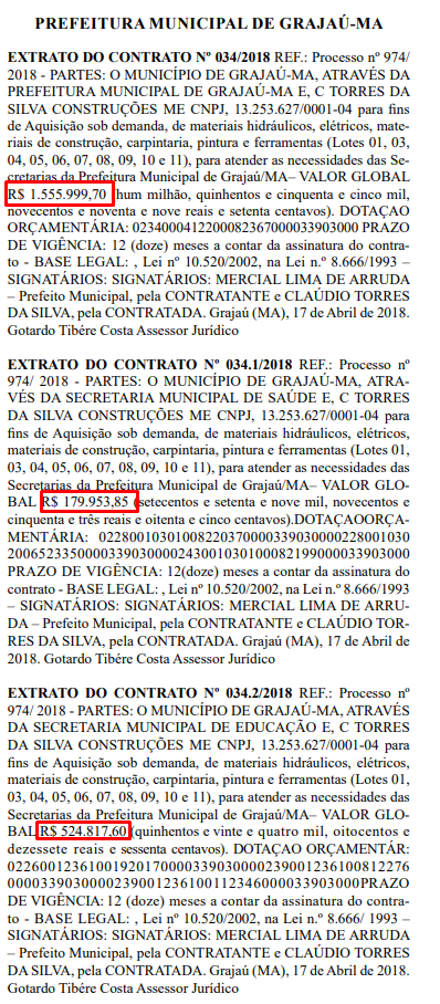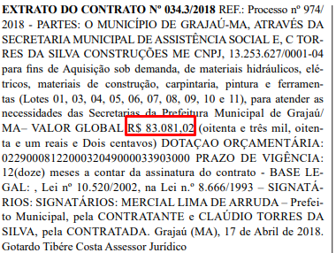 A Prefeitura de Grajaú pretende gastar milhões com a compra de de materiais hidráulicos, elétricos, materiais de construção, carpintaria, pintura e ferramentas para atender as demandas das Secretarias municipais, segundo o Diário Oficial.