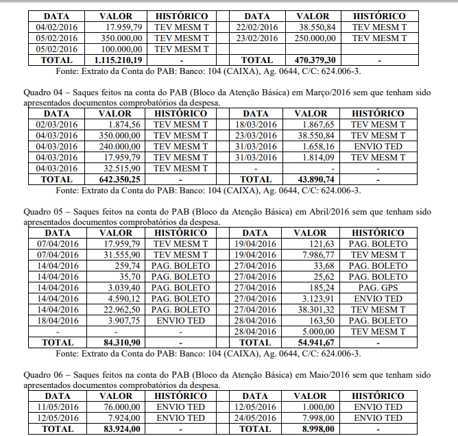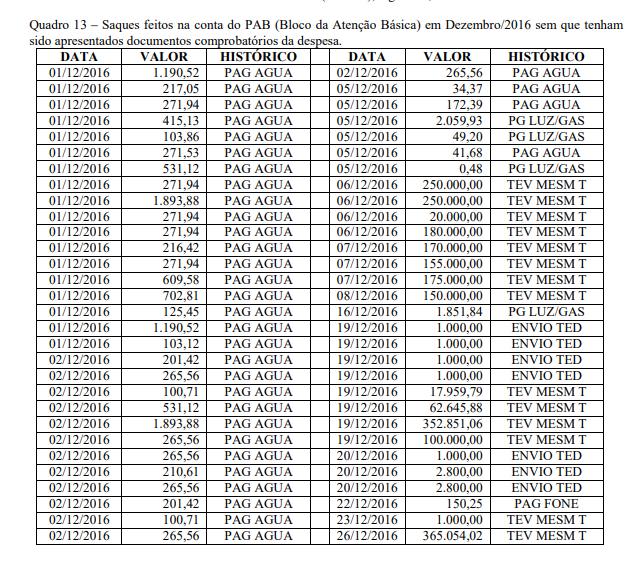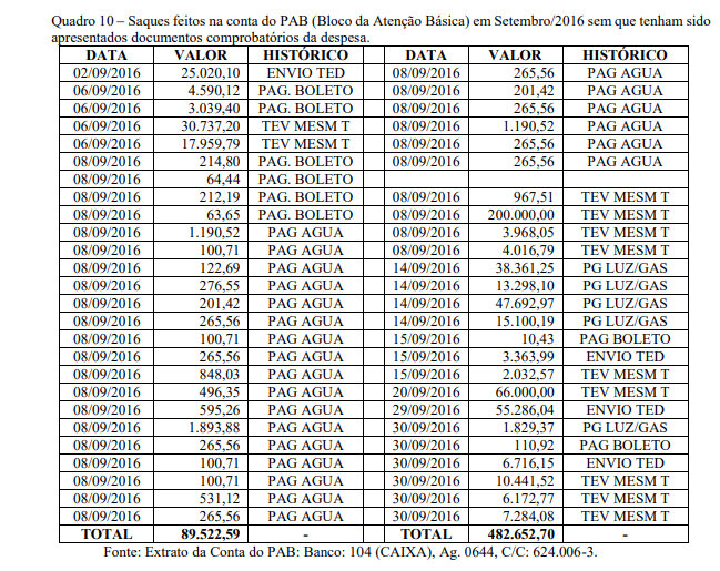 De valor citado acima, constatou-se a ausência de comprovação de gastos feitos à conta do Programa no montante de R$ 10.154.752,89 milhões.