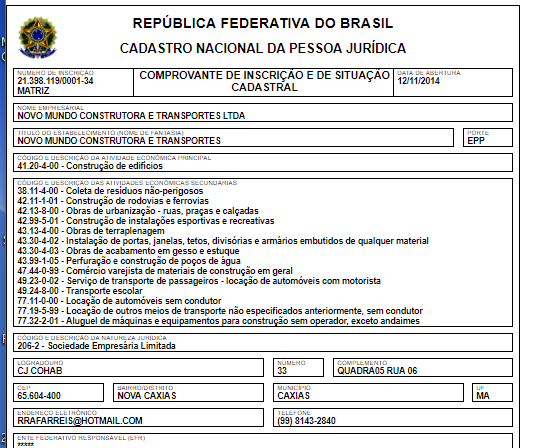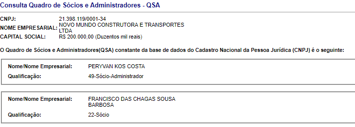 A construtora foi contratada para os serviços de Urbanização da Avenida Principal e Rua Pau Brasil de Lagoa do Mato, a mesma fica localidade em Caxias. Os proprietários da empresa são Peryvan Kos Costa e Francisco Das Chagas Sousa Barbosa.