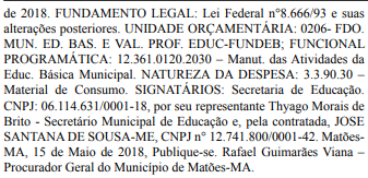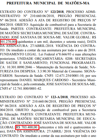 A Prefeitura de Matões firmou contrato milionário com a empresa Jose Santana de Sousa, através das secretarias de Saúde e Educação. A empresa que tem como nome fantasia Posto Santana vai ganhar mais de R$ 1 milhão.