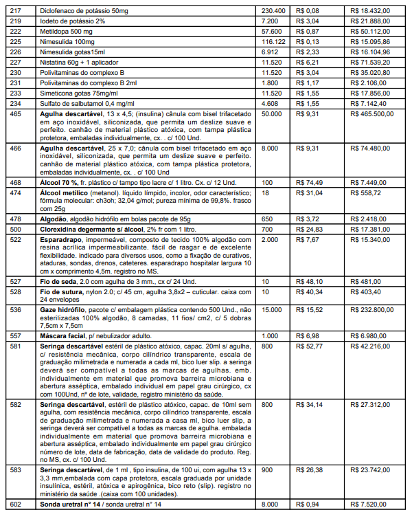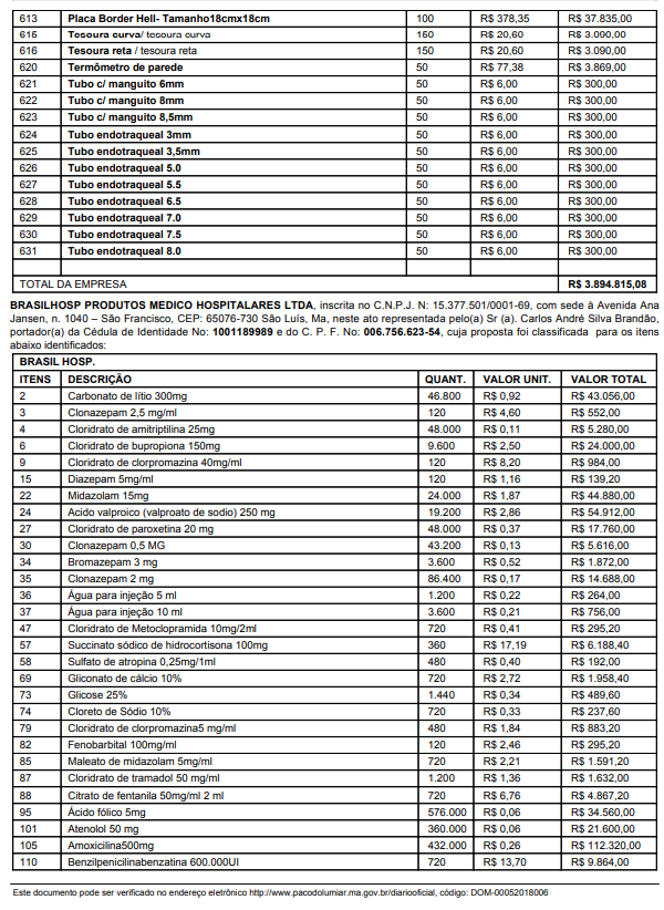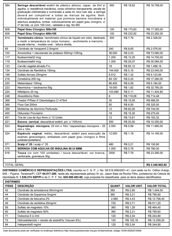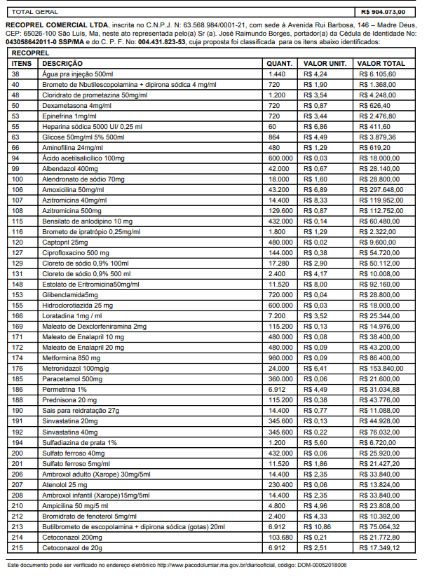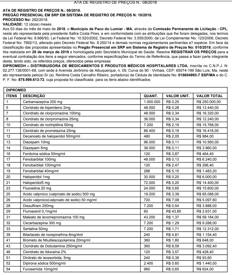 Segundo a Ata de Preços publicada no Diário do Município, 4 empresas foram contratadas para fazer o fornecimento dos produtos. A Dipromedh – Distribuidora de Medicamentos e Produtos Médicos Hospitalares, a BrasilHosp Produtos Médicos Hospitalares, a Recoprel Comercial Ltda, São Jorge Distribuidora Hospitalar , todas localizadas em São Luís, e a Distrimed Comércio e Representações, com sede em Teresina, PI.
