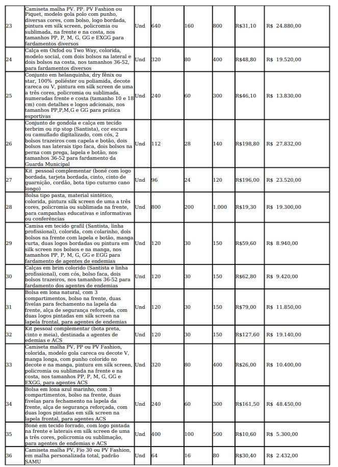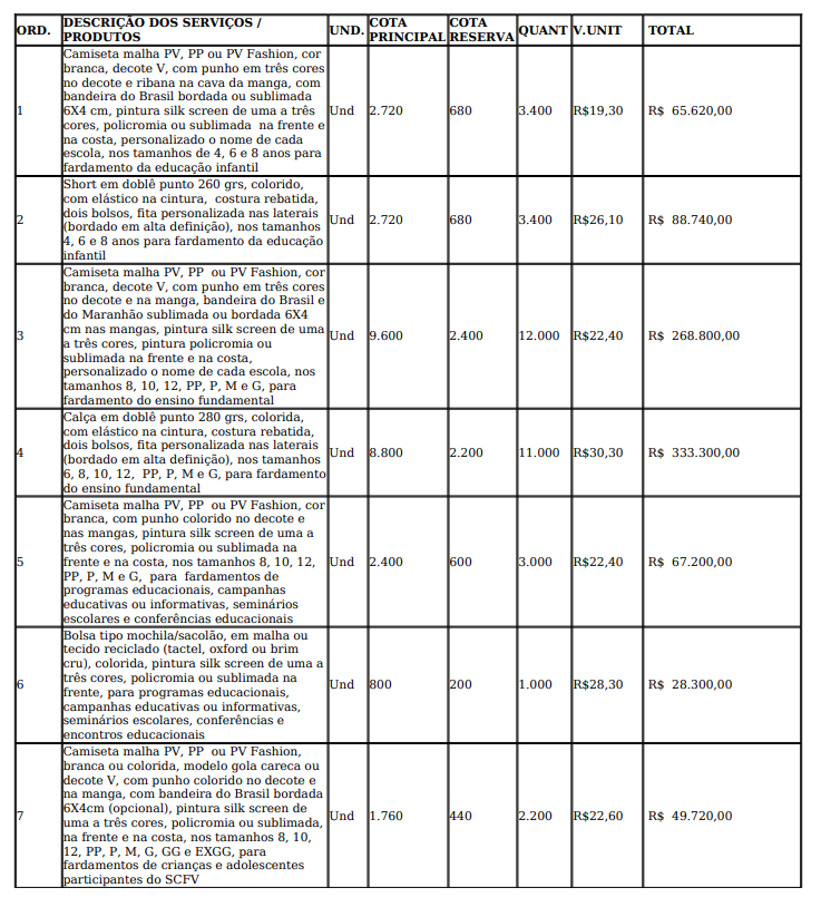 O objeto contratual visa a compra de fardamentos em geral, que vai custar R$ 2.088.902,00 milhões aos cofres públicos.