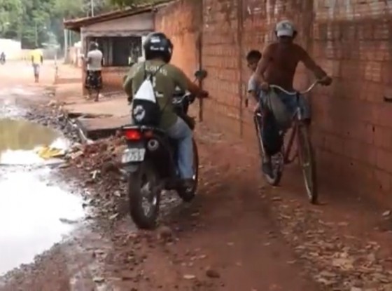 A situação é tão precária que a calçada, hoje em dia, não é mais feita apenas para a passagem de pedestres mas, também, de motoqueiros que sempre buscam o melhor trecho. A rua do militar, que fica localizada próximo à avenida, desce toda a água do esgoto do bairro São Raimundo e a lama fica acumulada na via.