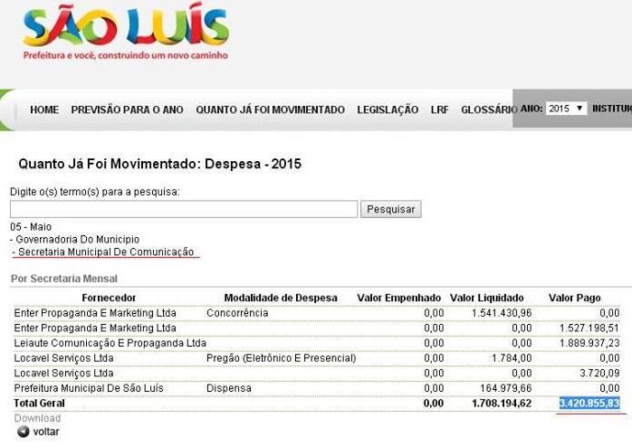 Na prestação de contas da Prefeitura de São Luís referente ao mês de maio, uma cifra chama a atenção: a da Secretaria de Comunicação.