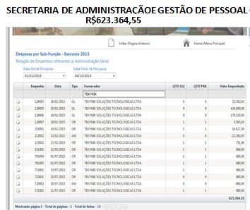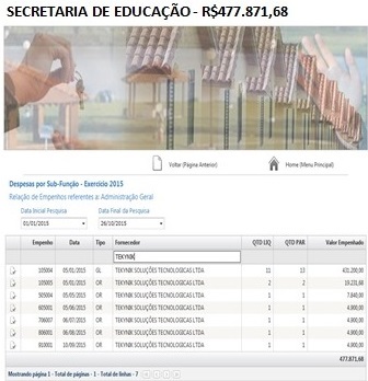 A Tekynik foi turbinada em contratos com 15 secretarias: Educação, Meio Ambiente, Administração, Desenvolvimento Econômico e Turismo, Esporte e Juventude, Desenvolvimento Rural, Cultura, Finanças, Saúde, Desenvolvimento Social, Recursos Humanos, Agricultura, Infraestrutura, Habitação e Planejamento.