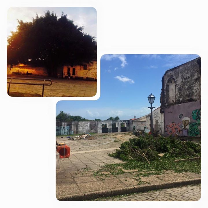 Esse local ai é aquele ali em cima da nauro machado? Só servia de abrigo pra usuarios de drogas. Cortar aquela árvore foi uma maneira de melhorar a visibilidade das rondas policiais naquela área.