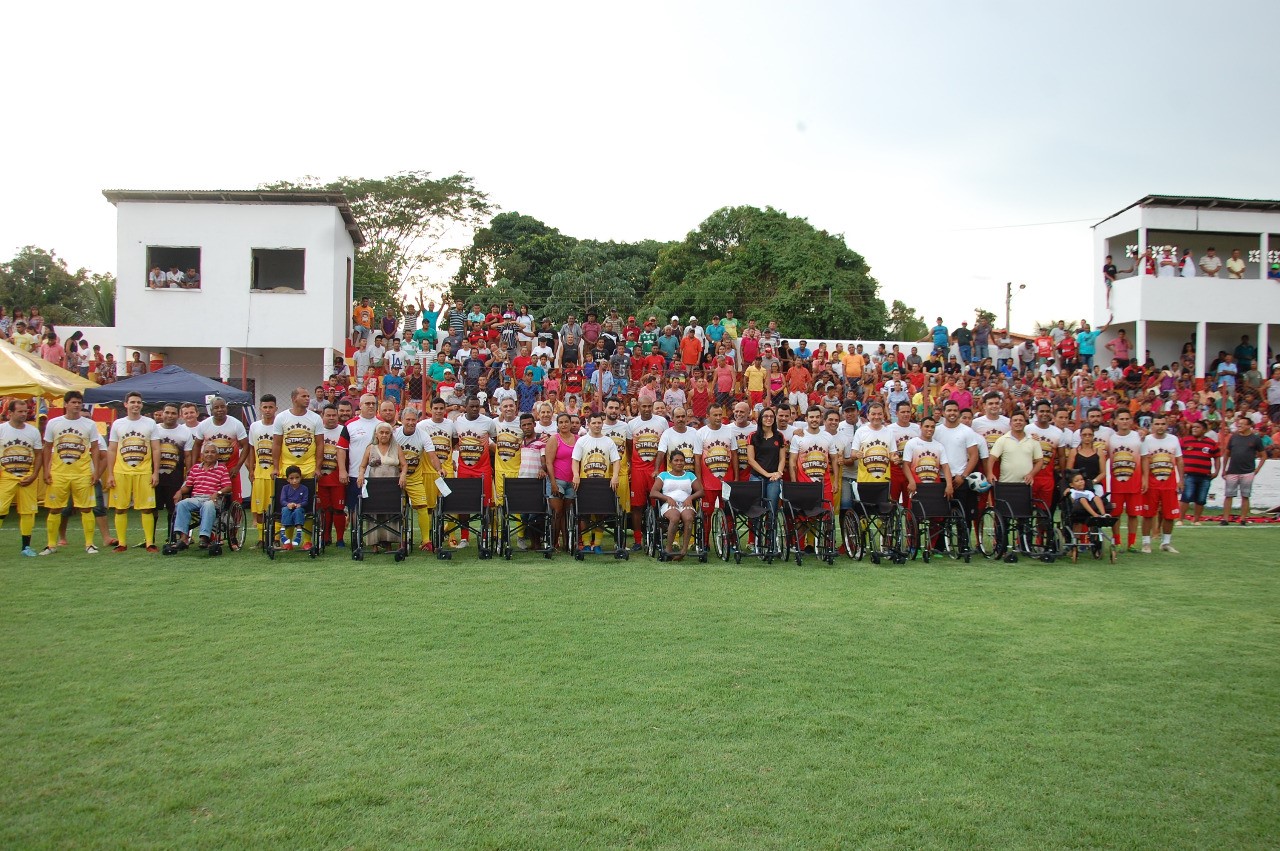 Durante o evento, teve entrega de cadeiras de rodas para famílias carentes e arrecadação de alimentos não perecíveis, que foram doados em troca de ingressos para o jogo.