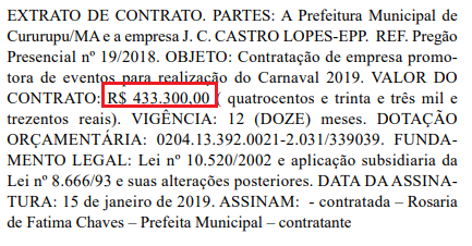 De acordo com as informações divulgadas no Diário Oficial do Maranhão, a empresa responsável por organizar a festa será a Kadosh Serviços Corporativos, localizada em Humberto de Campos.