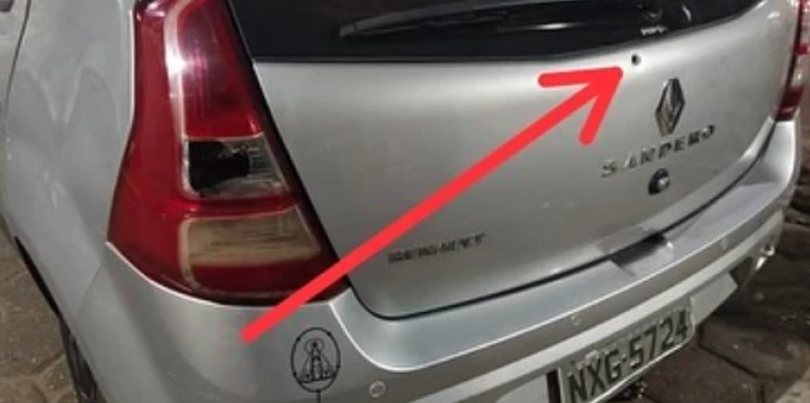 O tiro não atingiu nenhum dos ocupantes do carro, mas perfurou a lataria e o banco traseiro.