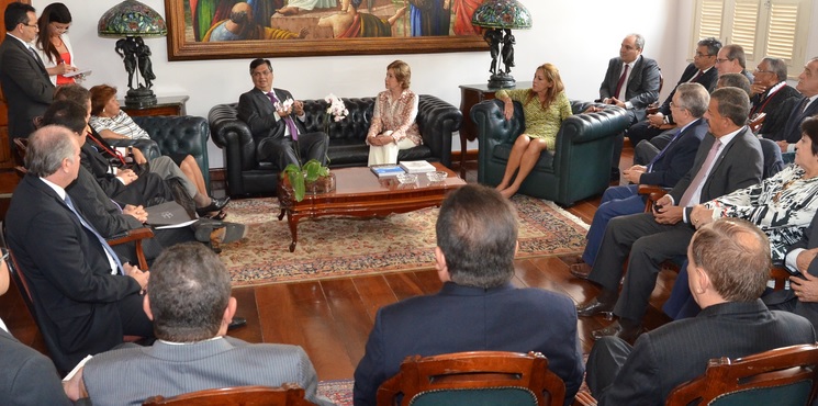A presidente do TJMA e os desembargadores apresentaram ao governador demandas relacionadas ao funcionamento e estrutura do Poder Judiciário, como a necessidade de um terreno para construir unidades administrativas – objeto da Lei nº 10.166/2014; recursos para construção e reforma de fóruns; cooperação no combate ao crime organizado e em parcerias com vistas a impulsionar o trabalho da conciliação na solução de demandas judiciais.