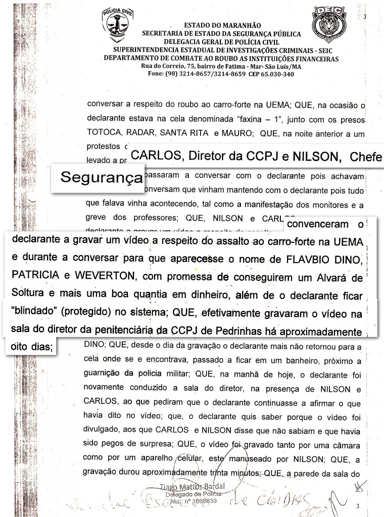 estava detido em um presídio. O enredo para tentar incriminar Flávio Dino