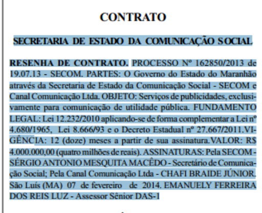 A produtora de TV “Canal”, de propriedade de Chafi Braide Júnior era contratada no governo de José Reinaldo Tavares.