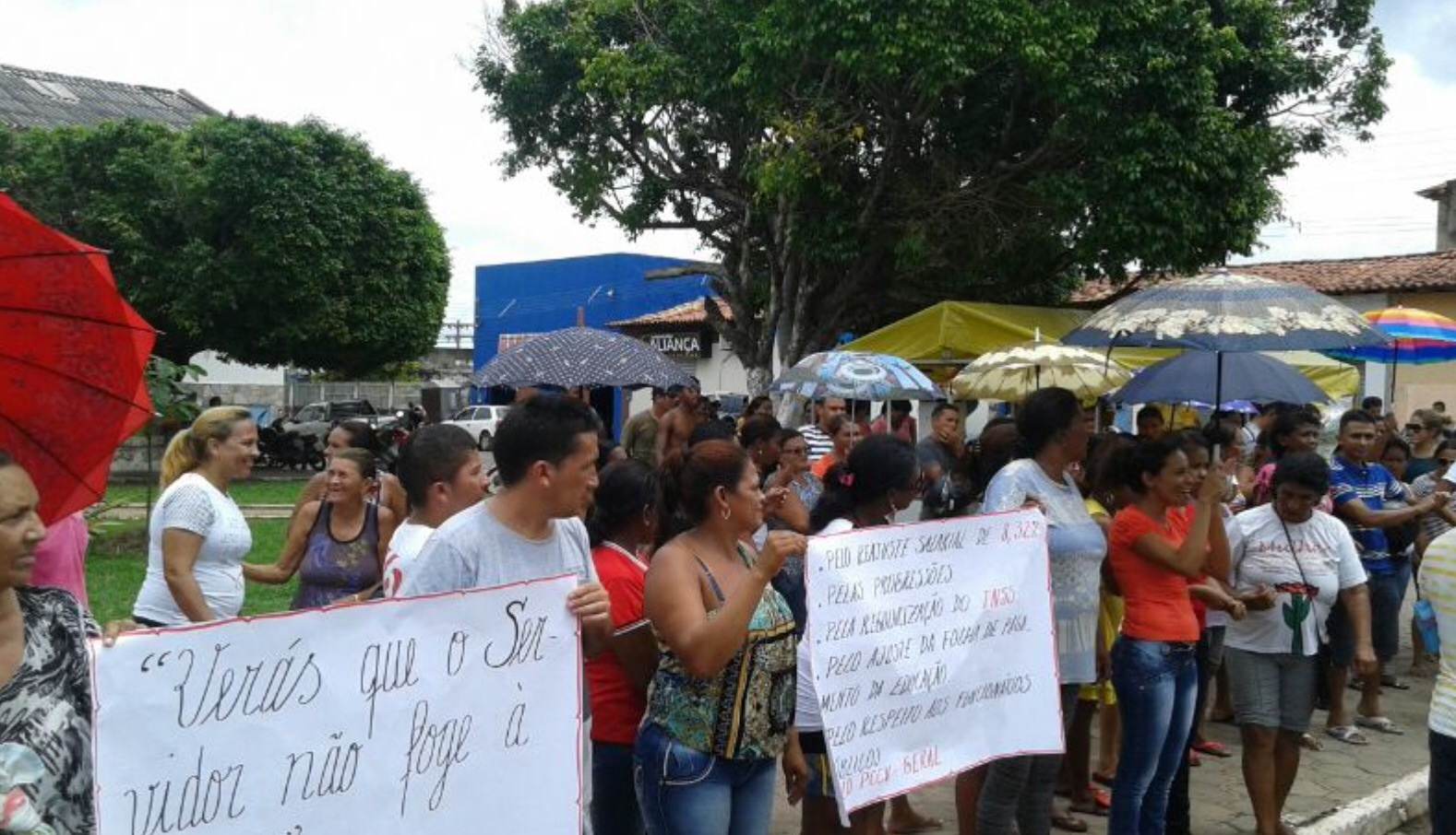 Os dias de suspensão das atividades estão sendo marcados por atos de protestos dos professores em frente à Prefeitura que reivindicam a efetivação do reajuste salarial da classe que chega a 8,32%, com previsão para 2014, conforme determina a Lei do Piso Salarial de nº 11.738/2008.