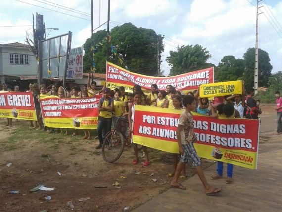 Esses professores estão bem, fora a faixa com “exijimos” agora são várias outras p ser utilizados nos seus protestos. rapaz, sei não.. tem professor fazendo greve p querer mais dinheiro 20% de aumento, mas tem condição de comprar faixas, fazer blusas e elaborar praticamente um comicio em suas manifestações…. sei nao isso é politicagem.