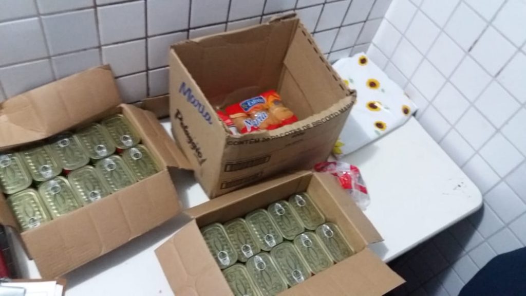 Já na escola Santa Bárbara, havia alimentos no estoque, mas em quantidade insuficiente para suprir as necessidades dos 189 alunos matriculados. Foram encontradas 10 unidades de leite em pó, um fardo de arroz, quatro pacotes de feijão, sete de macarrão e quatro de biscoito água e sal. Nenhum alimento de origem animal foi encontrado, o que impossibilita a combinação de alimentos para uma refeição completa.