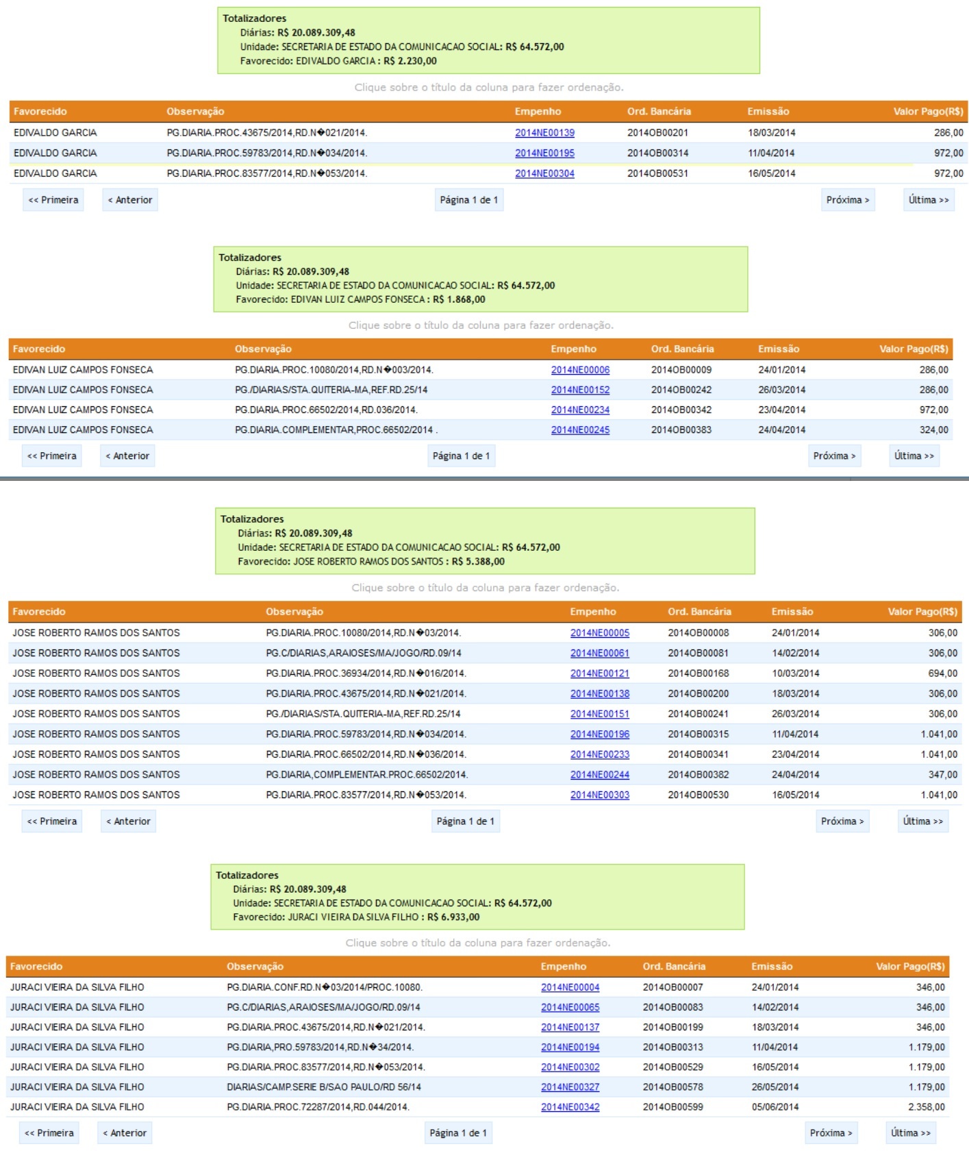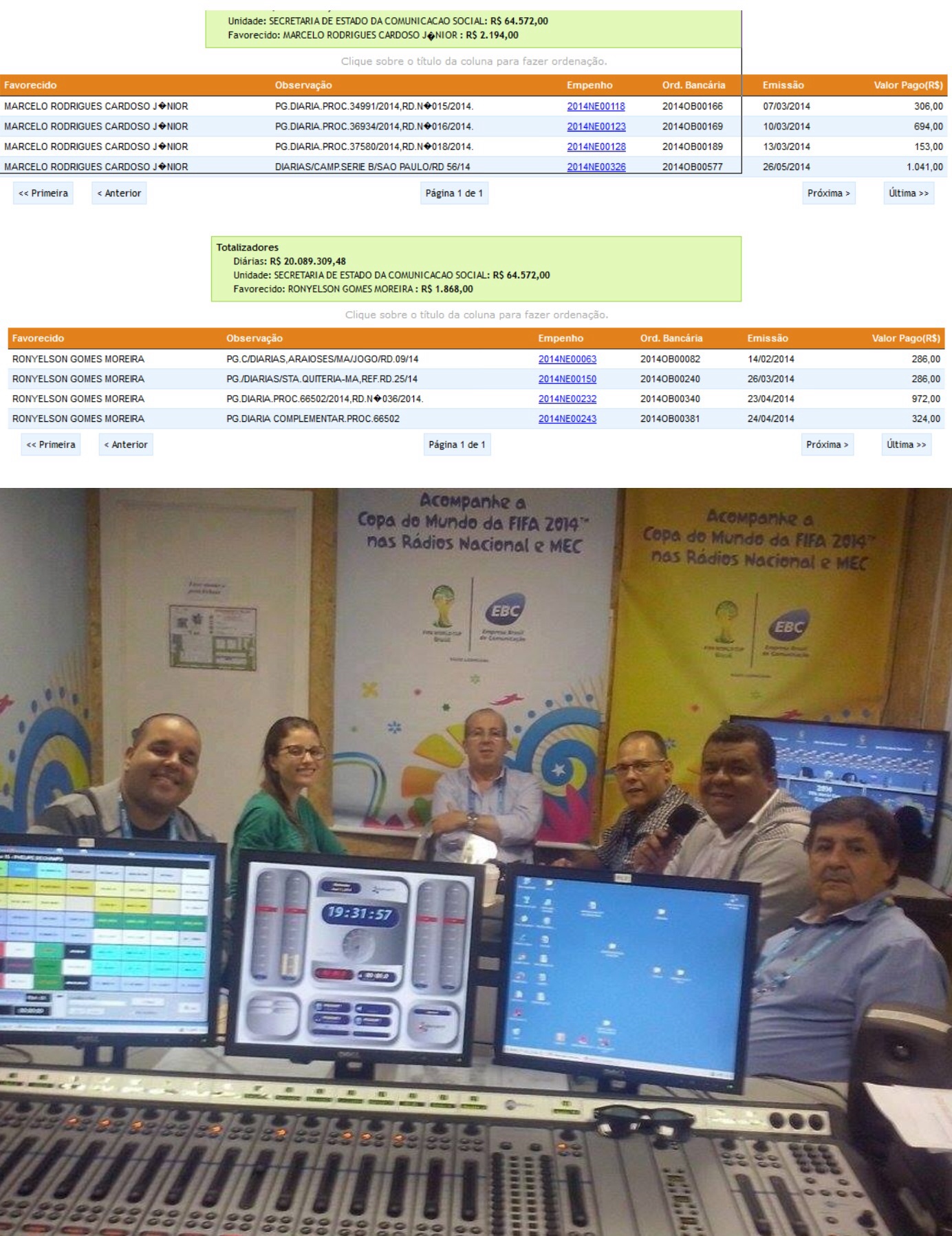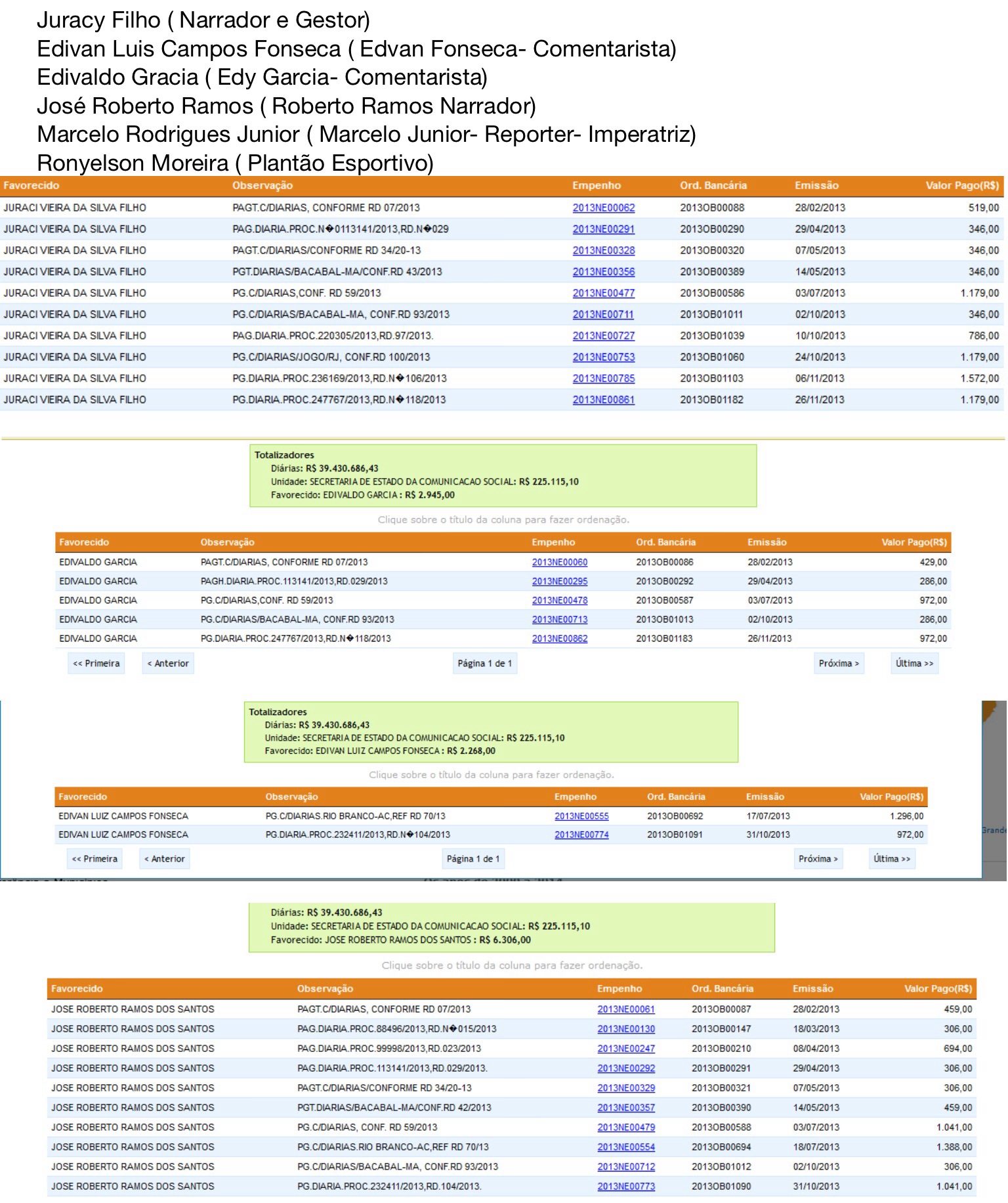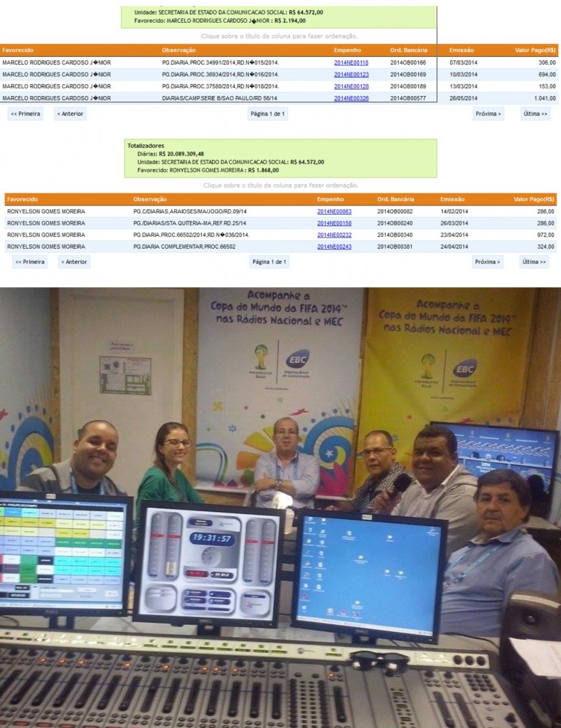 O blog divulga abaixo imagens de quanto cada um recebeu com diarias. Vale destacar ainda que o gestor esta usando diárias do governo para poder transmitir jogos da Copa do Mundo pela EBC ( Empresa Brasil de Comunicação) conforme segue a foto em anexo ( com o microfone na mão)