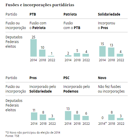 O endurecimento das regras eleitorais no pleito deste ano impulsionou três novas fusões partidárias desde o fim da disputa, reduzindo para 20 o número de partidos que terão representação no Congresso Nacional a partir de 2023.