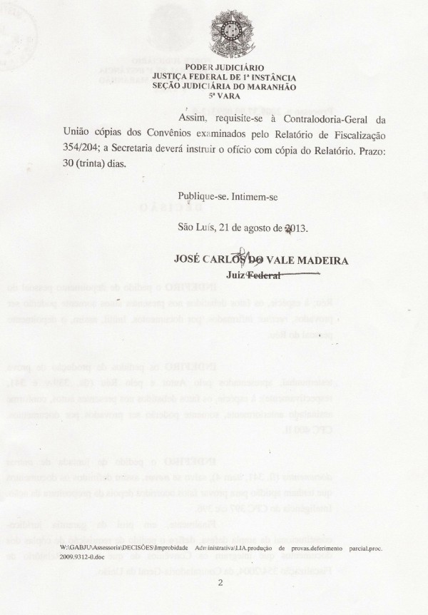 O secretário de Estado de Cidades e Desenvolvimento Urbano, Hildo Rocha – réu em um processo que tramita na Justiça sob o comando do juiz federal José Carlos do Vale Madeira, da 5ª Vara da Seção Judiciária do Maranhão – tentou desqualificar a afirmação do magistrado de que ele corre o risco de ficar inelegível em 2014.