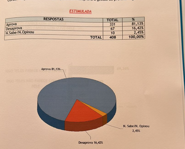 O Inop também questionou aos eleitores se eles aprovam ou não a gestão de Rigo Teles.