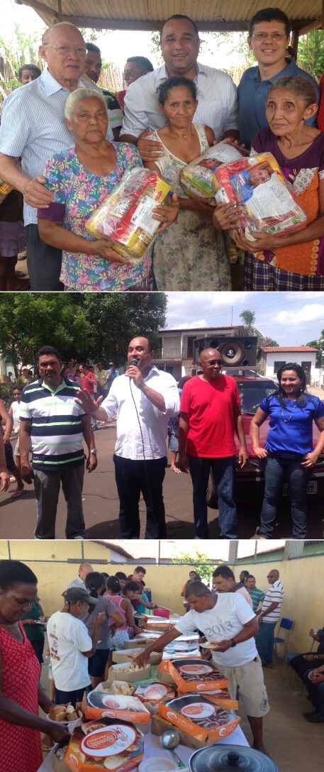 Após entregar mais de quatro mil cestas básicas em Bacabal, na semana passada, agora foi a vez dos povoados bacabalenses receberem a ação comandada pelo deputado estadual Roberto Costa (PMDB). Ao lado do senador João Alberto e do deputado federal eleito, João Marcelo, ambos do PMDB, Costa percorreu sete grandes povoados de Bacabal. A ação teve início no último sábado com um café da manhã para os moraores da comunidade quilombola do Piratininga, a comunidade quilombola do Catucá também foi beneficiada com a entrega. Os outros povoados beneficados foram Bom Princípio, Aldeia, Boa Vista, Brejinho e Vila Nova.