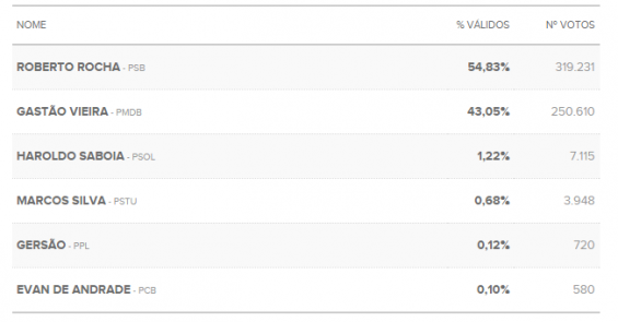 Roberto Rocha 54,83%; Gastão Vieira 43,05%. Confira em tempo real 05/10/2014 | PÁGINA PRINCIPAL, Notícias Navegação de Post Os 10 candidatos mais votados para deputado federal20% das urnas foram apuradas no Maranhão