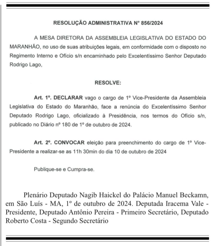 O deputado estadual Rodrigo Lago (PCdoB) reiniciou ao cargo que ocupava como 1° vice-presidente da Mesa Diretora da Assembleia Legislativa do Maranhão na manhã desta terça-feira (01).