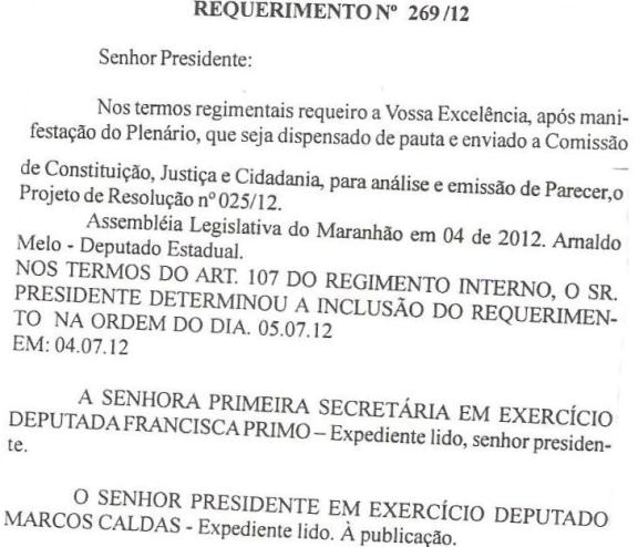 Roseana, que, diga-se de passagem, não permitirá que o projeto de resolução legislativo de Nº 025/2012 que permite a partir do dia 15 de julho do segundo ano da Legislatura, realizar-se a sessão preparatória para a eleição da Mesa Diretora da Assembleia seja aprovado, até se possível chamar na “chamar na chincha” os parlamentares que compõem a base governista.