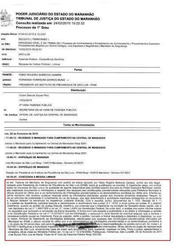 O Instituto de Previdência e Assistência do Município – IPAM, autarquia vinculada à Secretaria Municipal de Administração da Prefeitura de São Luís, tem 10 (dez) dias para fornecer dados sobre sua situação financeira, sob pena de multa diária de R$ 1 mil reais. A determinação que é do juiz Cicero Dias de Sousa, titular da 4ª Vara da Fazenda Pública do Maranhão, ainda cabe recurso.