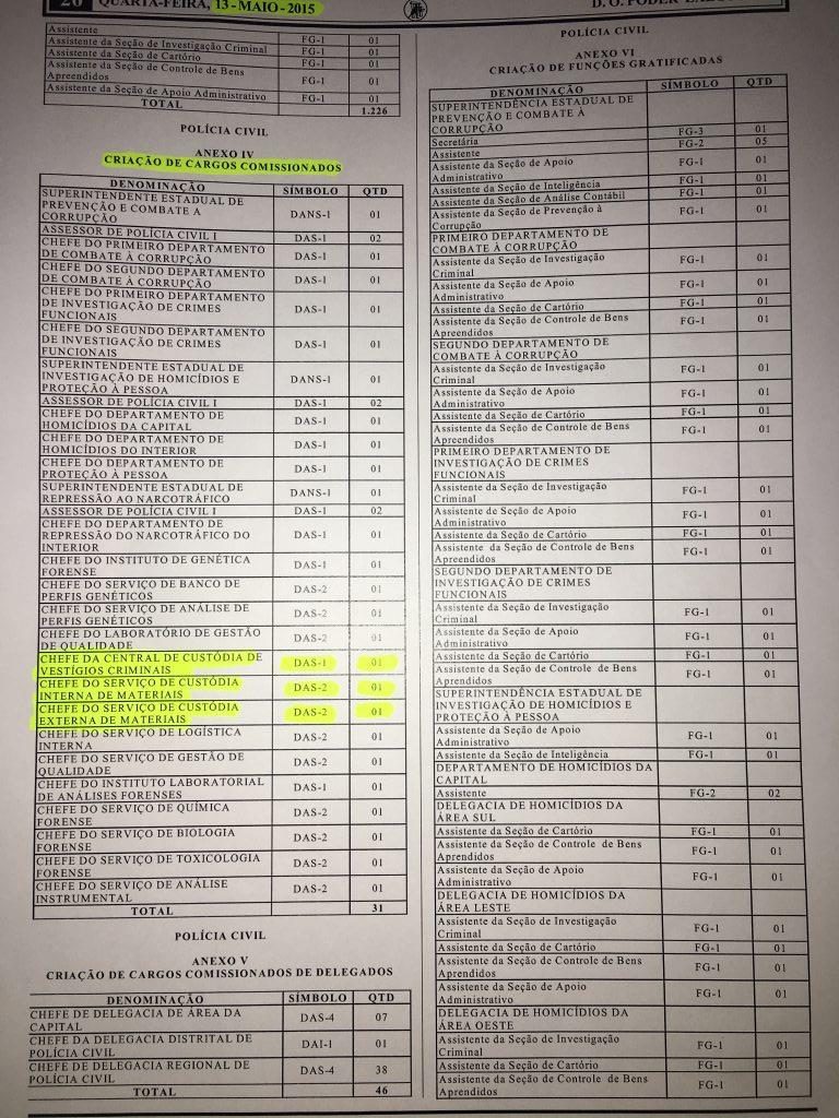 A Segurança de Pública do Maranhão criou em 13 de maio de 2015 vários cargos comissionados e chefias para Central de Custódia de Vestígios Criminais, subordinada à Superintendência de Polícia Técnica.