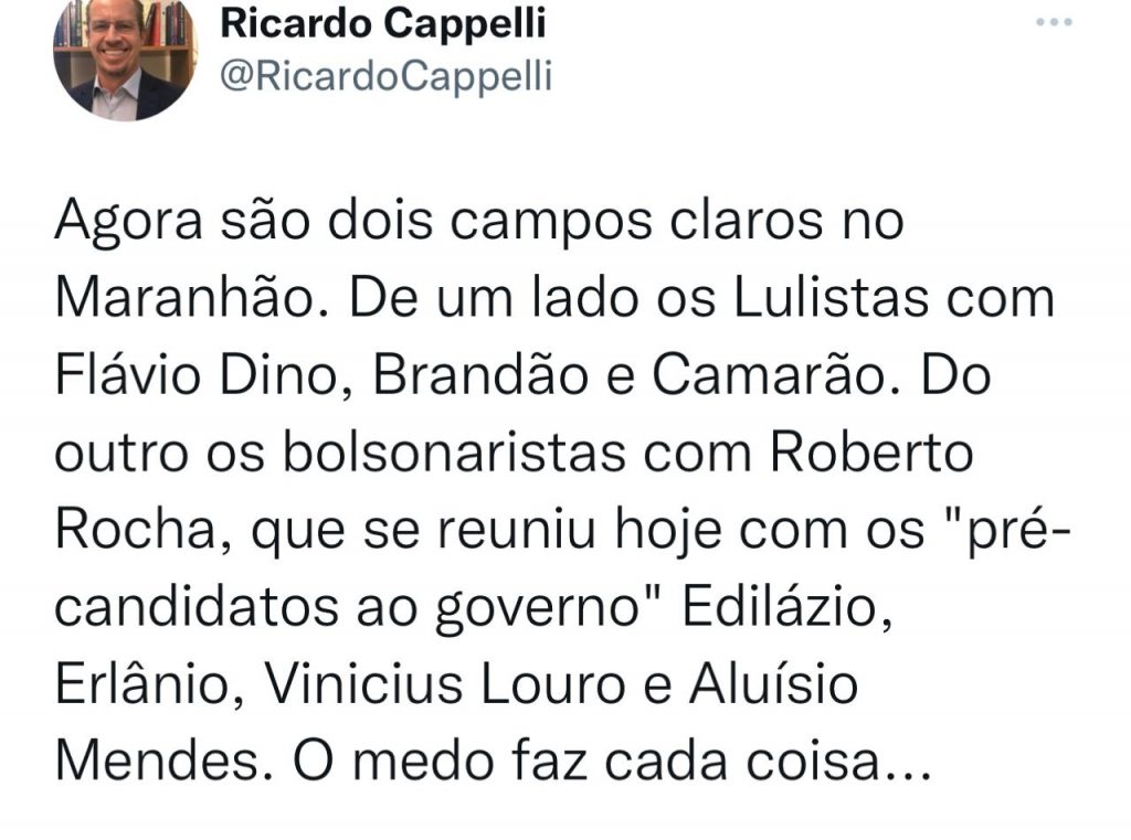 Em um dos comentários, Capelli não somente ironizou o fato da declaração publicada de apoio do PTB, PDT, PSC, PL, PSD, Pros, Republicanos, Agir 36 e PMN ao senador, como criticou indiretamente o deputado federal Josimar de Maranhãozinho.