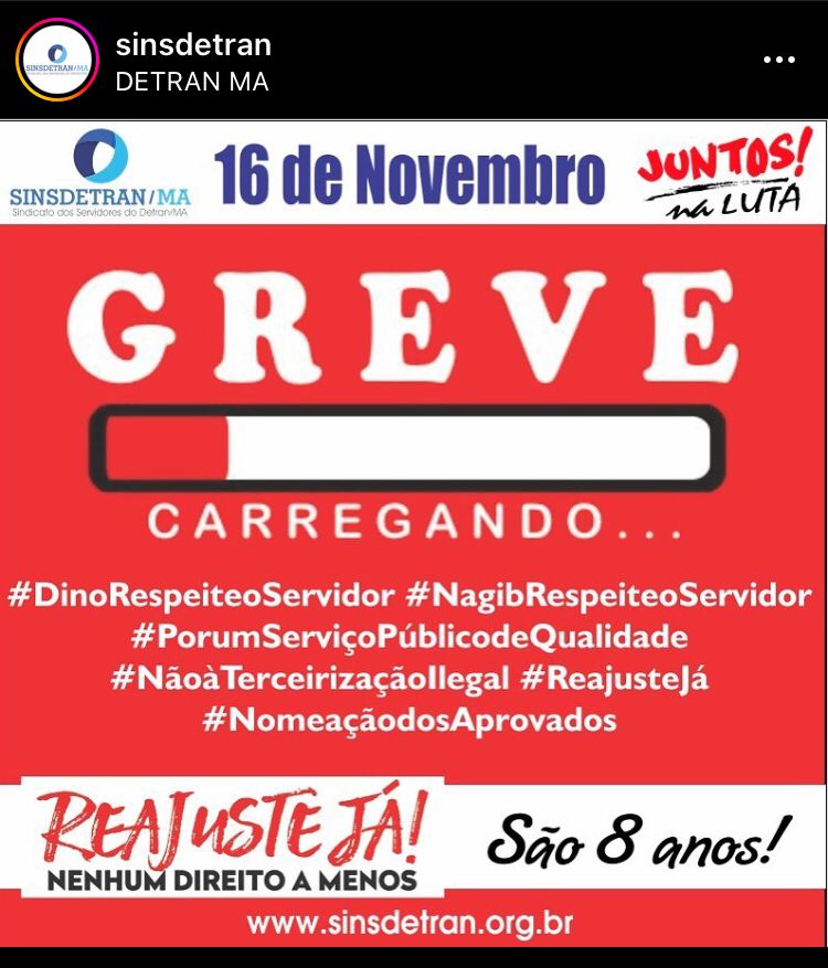 Servidores do Departamento de Trânsito do Maranhão (DETRAN-MA) confirmaram em nota que haverá paralisações das atividades a partir desta terça-feira (16). Segundo os trabalhadores, a greve será por tempo indeterminado.