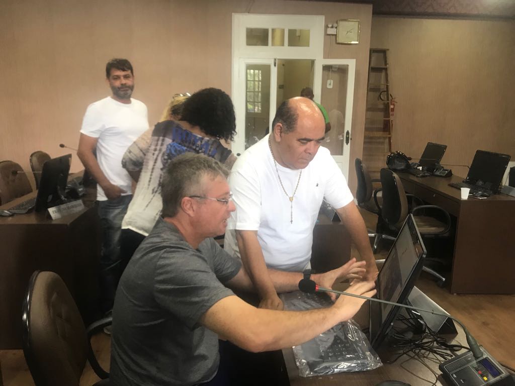 Durante a instalação dos equipamentos, na última quinta-feira (26/07), o chefe do legislativo apresentou a novidade aos vereadores, que foram ao parlamento, na parte da manhã, para receberem instruções de uso das novas ferramentas que serão utilizadas em todas as sessões da Casa, logo após o recesso parlamentar, no próximo dia 6 de agosto. Os vereadores Cesar Bombeiro (PSD), Pavão Filho (PDT), Antônio Garcez (PTC) e Osmar Filho (PDT), elogiaram o ambiente dotado de meios de comunicação e de modernidade que se soma ao sistema de som, substituído por equipamento digital, e ao painel eletrônico de votação.