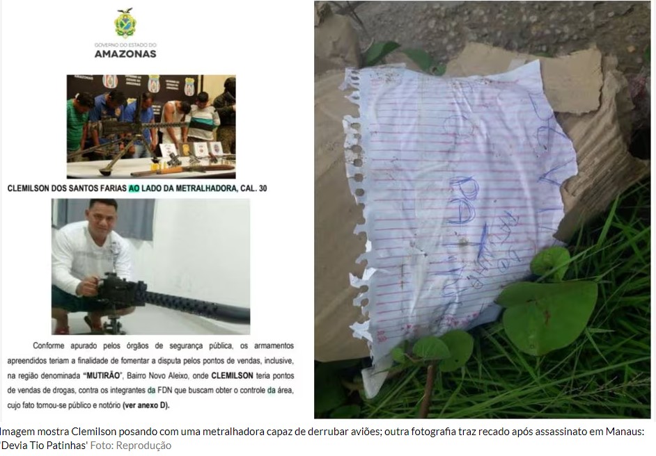 Os métodos violentos de Tio Patinhas marcam a crônica policial do Amazonas. Em abril de 2019, um homem foi encontrado morto em Manaus com um cartaz no rosto: “devia Tio Patinhas”. Num ataque a um motel, um homem foi morto com tiro na cabeça e outro ficou ferido, ambos vítima de execução comandada pelo traficante. Tio Patinhas também já posou para foto segurando uma metralhadora de artilharia antiaérea calibre .30, capaz de abater aeronaves e atravessar veículos blindados.
