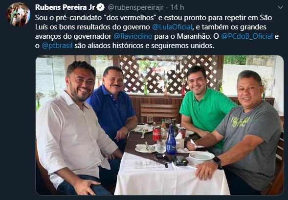 Na postagem, Rubens Júnior, que também deputado federal, mas está licenciado, disse que está pronto para repetir os bons resultados do governo do ex-presidente da República, Luiz Inácio Lula da Silva em São Luís.