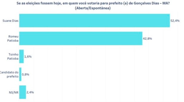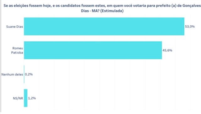 A última pesquisa de intenção de votos no município de Gonçalves Dias-MA apontou a vitória de Suane Dias.
