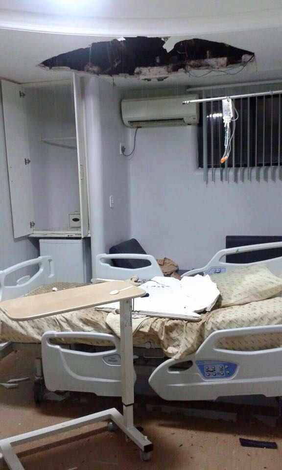 Segundo informações, o teto de uma das unidades hospitalar caiu na cama de uma idosa que estava internada no local. Na ocasião, ela estava fora da cama em horário de almoço.